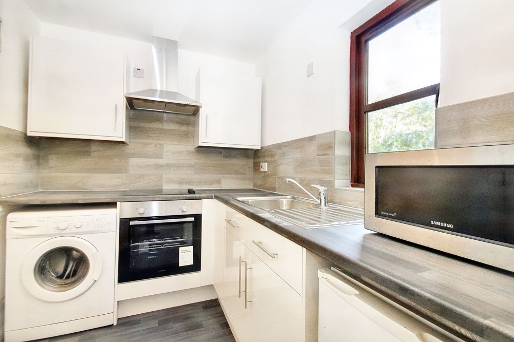 This attractive apartment offers a blend of modern style and natural beauty, making it an appealing choice for those seeking comfort and convenience. The property features one spacious reception room, a contemporary bathroom, and a well-appointed modern kitchen. Sleek cabinetry, integrated appliances, and a stylish backsplash create an inviting space for cooking and entertaining, while the bright archway adds character and smooth flow between living areas. Large windows throughout the apartment flood the rooms with natural light, enhancing the sense of space and warmth.
