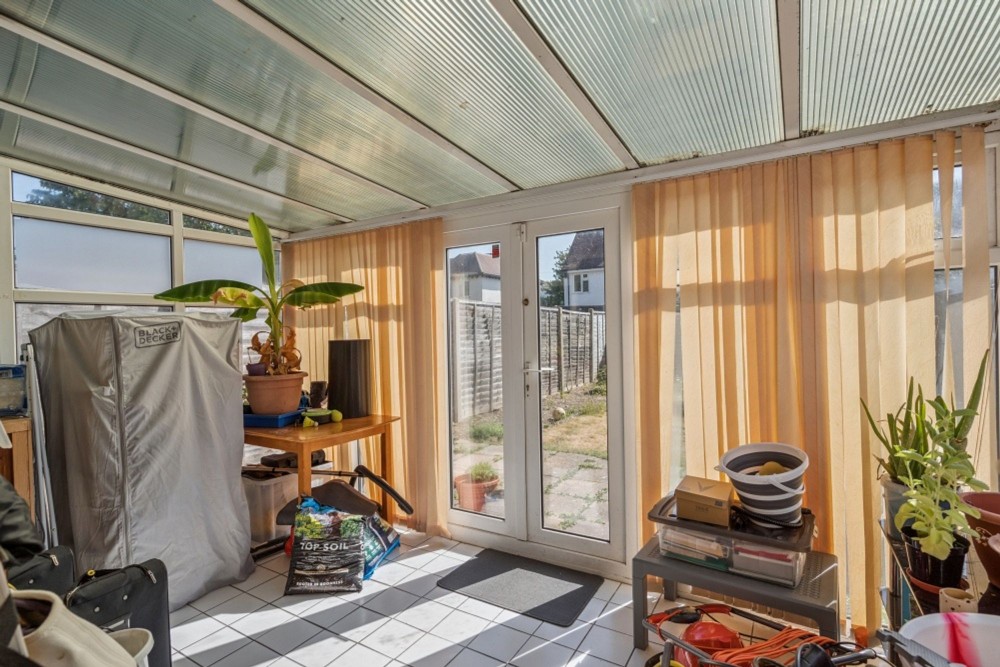 Tiled flooring, rear and side aspect, double glazed windows, French doors leading to the rear garden.