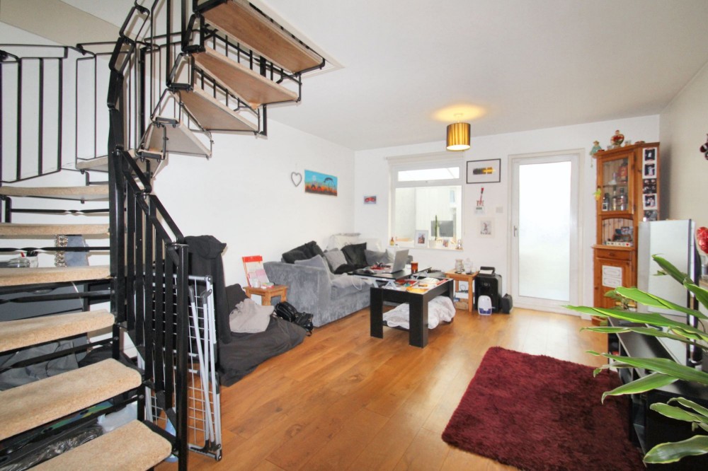 Laminate flooring, radiator, t.v point, stairs to first floor;