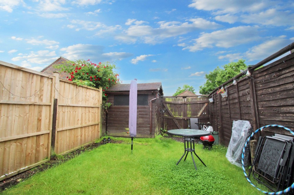 Laminate flooring, rear aspect double glazed windows and doors;