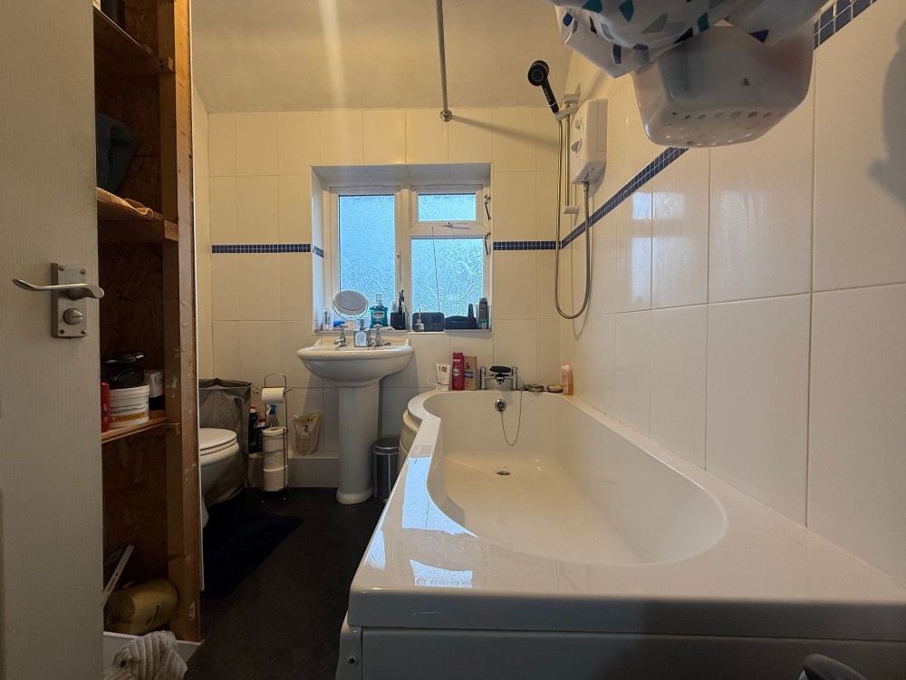 Front aspect double glazed window. Tiled walls, bath with shower attachment, pedestal wash hand basin, w.c.
