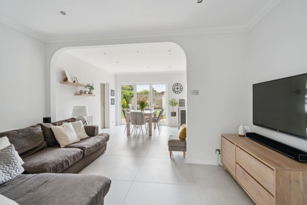 Rear aspect double glazed bi-folding doors leading to garden, tiled flooring, t.v point. Kitchen Area with with range of integrated appliances, five ring gas hob, double oven, dishwasher, fridge/freezer, wine cooler, range of base level and wall mounted units, sink with drainer, island.