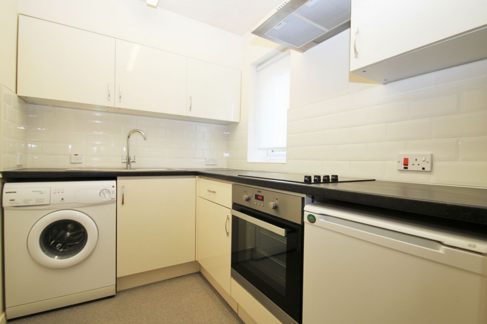• Contemporary kitchen with appliances including fridge, washing machine and oven/hob