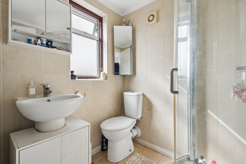 Rear aspect double glazed window, tiled walls and flooring, walk in shower, w.c, wash hand basin.