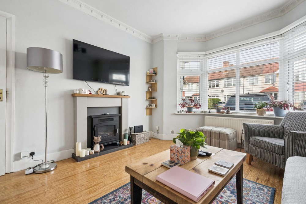Front aspect double glazed bay window, wooden flooring, radiator, fireplace, t.v point.