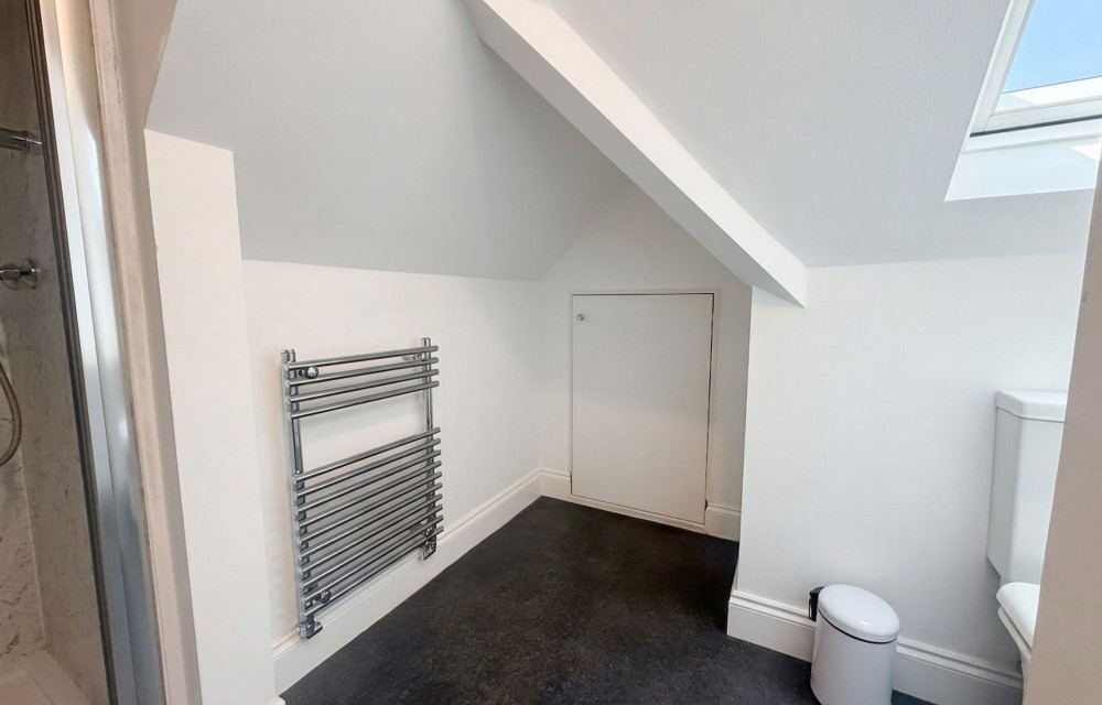 Skylight, w.c, walk in shower, wash hand basin with cupboard under.
