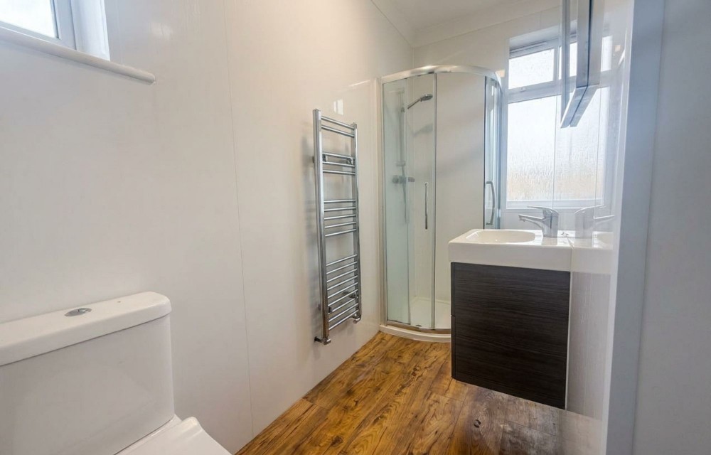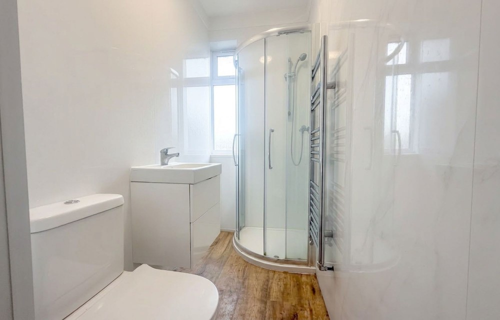 Side and rear aspect double glazed windows, laminate flooring, walk in shower, w.c, wash hand basin.