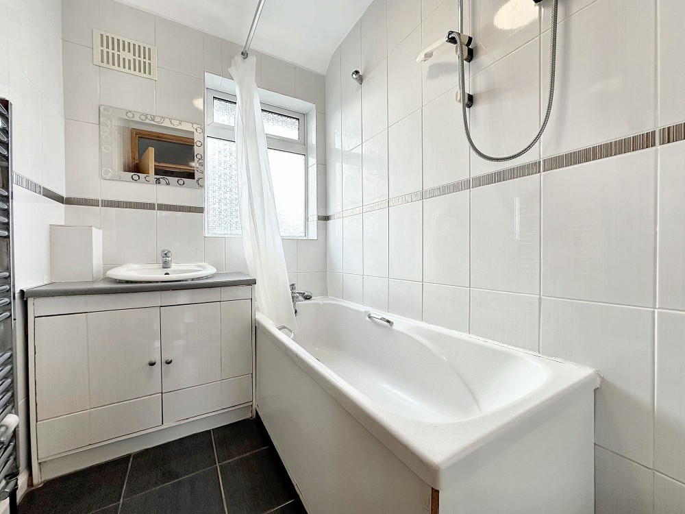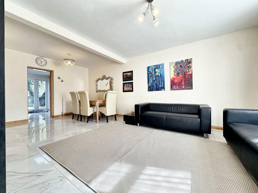 This beautifully presented three-bedroom terraced house offers modern, spacious living ideal for families or professionals. The heart of the home is a contemporary kitchen, complete with sleek units, an integrated oven, and a generous skylight that bathes the space in natural light. The open plan living and dining area is perfect for entertaining, featuring stylish tiled flooring and French doors that extend the living space out to a private garden, creating seamless indoor-outdoor living. The property also benefits from off-road parking and a charming front garden, offering both convenience and kerb appeal.