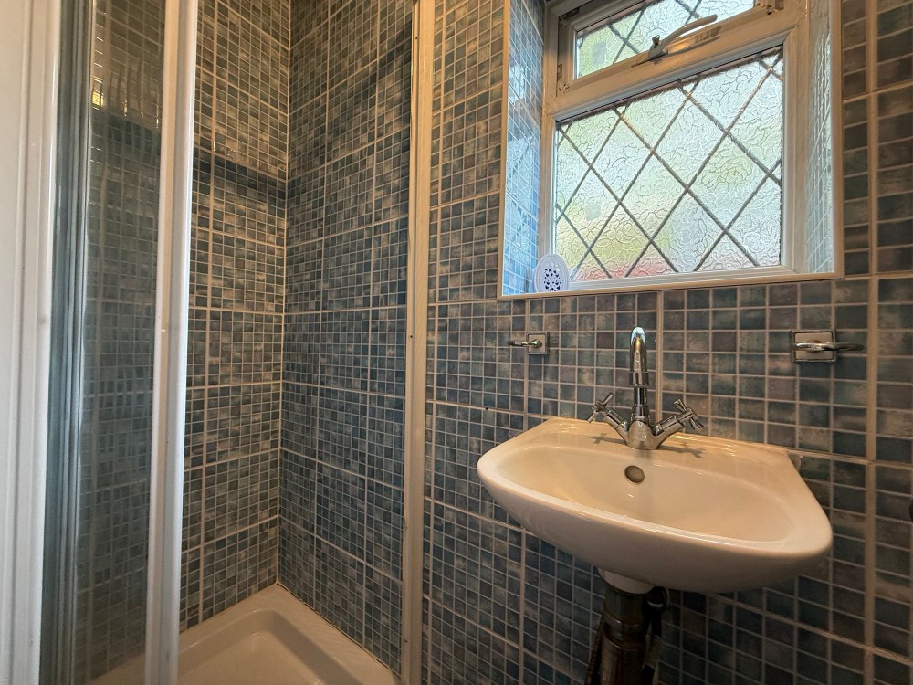 Side aspect double glazed window, sink with drainer, w.c, walk in shower.
