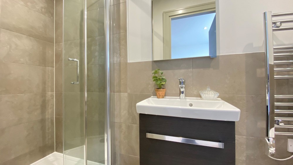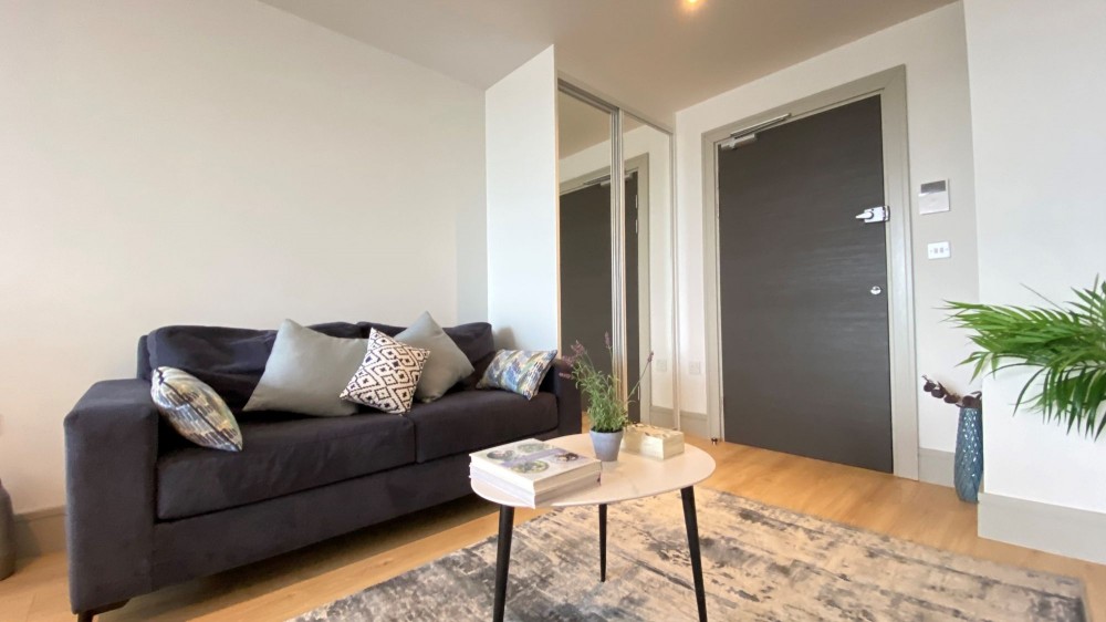 Additional features include a stylish bathroom complete with a modern walk-in shower, a sleek vanity unit, heated towel rail, and built-in shelving for convenient storage. The property benefits from a secure and sophisticated entrance lobby, boasting contemporary lighting, a professional reception desk, and secure mailboxes for residents’ peace of mind. Modern decor throughout, along with thoughtful details like mirrored wardrobes and decorative touches, enhance the flat’s appeal. With convenient lift access and a welcoming communal atmosphere, this flat is ideal for those seeking a comfortable, low-maintenance home. Its proximity to vibrant shopping areas and excellent public transport links makes it perfect for professionals or couples looking for an urban lifestyle.
