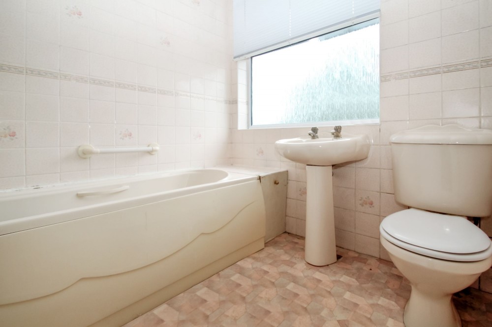Rear aspect double glazed window, lino flooring, w.c, wash hand basin, bath with shower attachment.