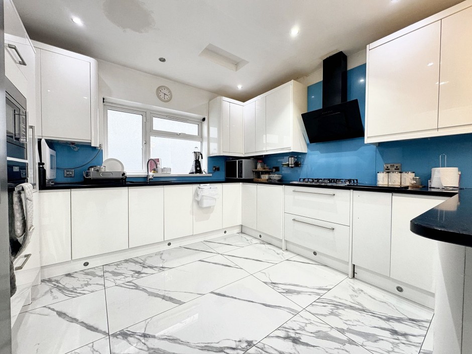 Rear and side aspect double glazed windows, double glazed bi-folding doors, tiled flooring, gas hob, oven, plumbing for washing machine, dish washer, space for fridge/freezer.