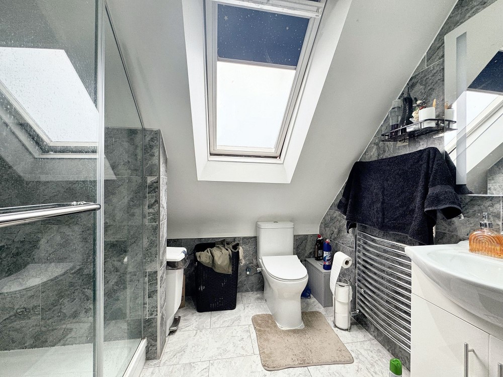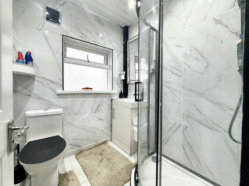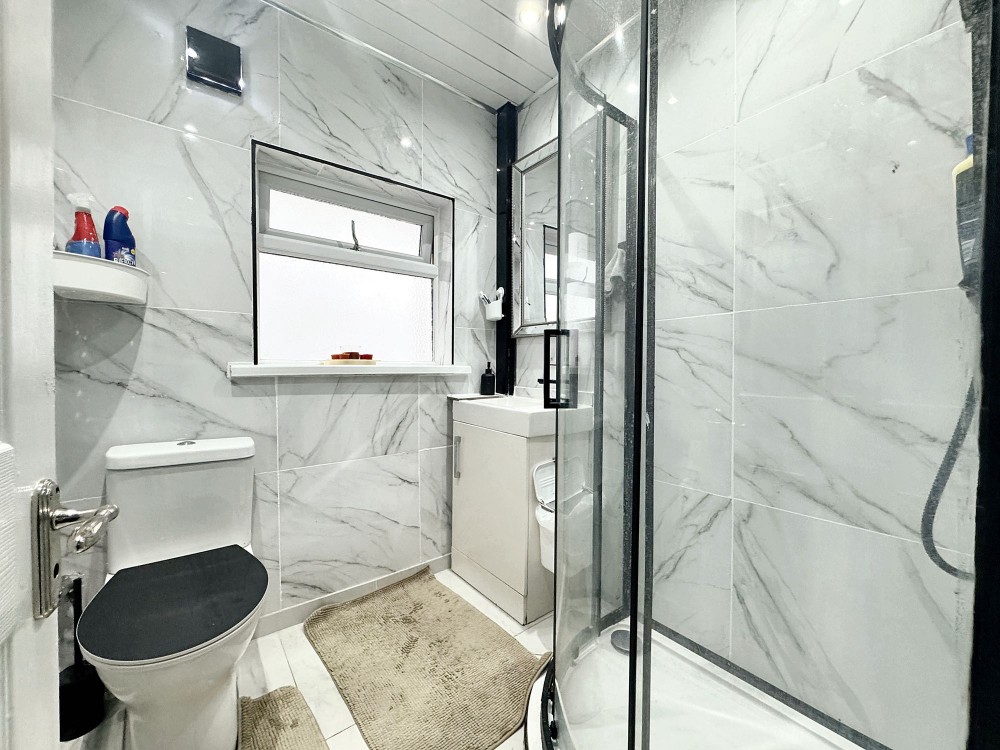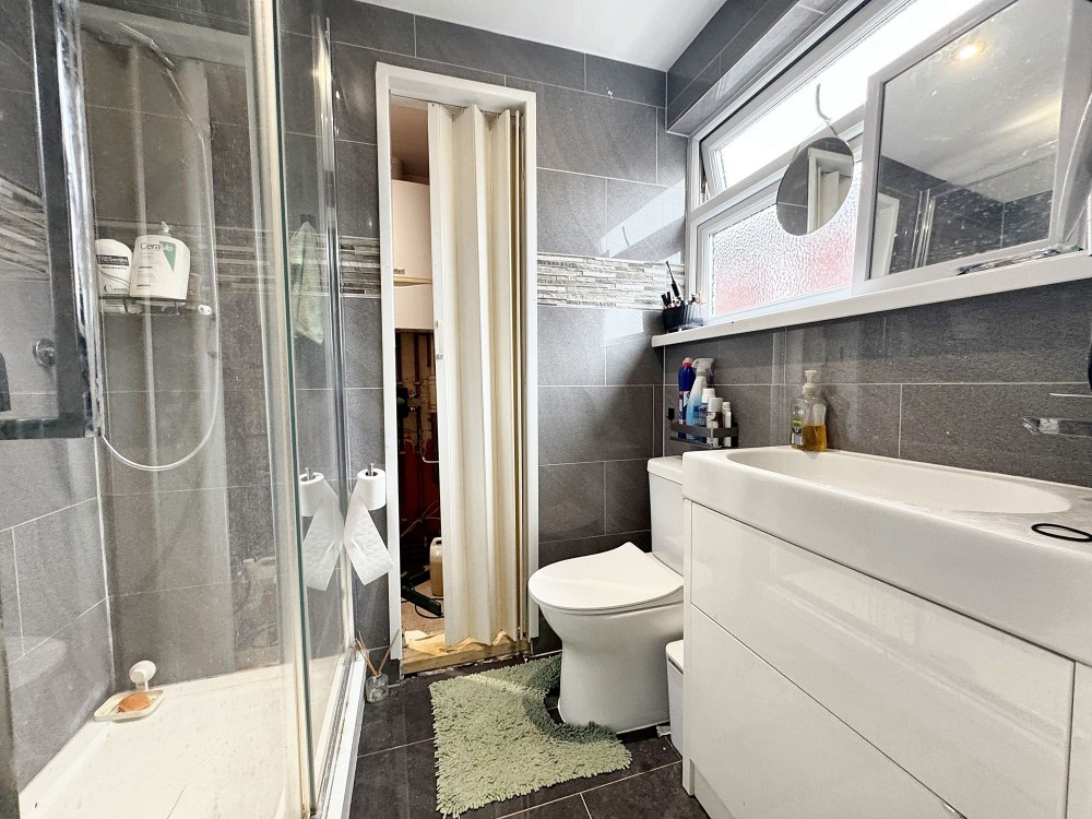 Side aspect double glazed window, tiled walls and flooring, w.c, walk in shower, wash hand basin.