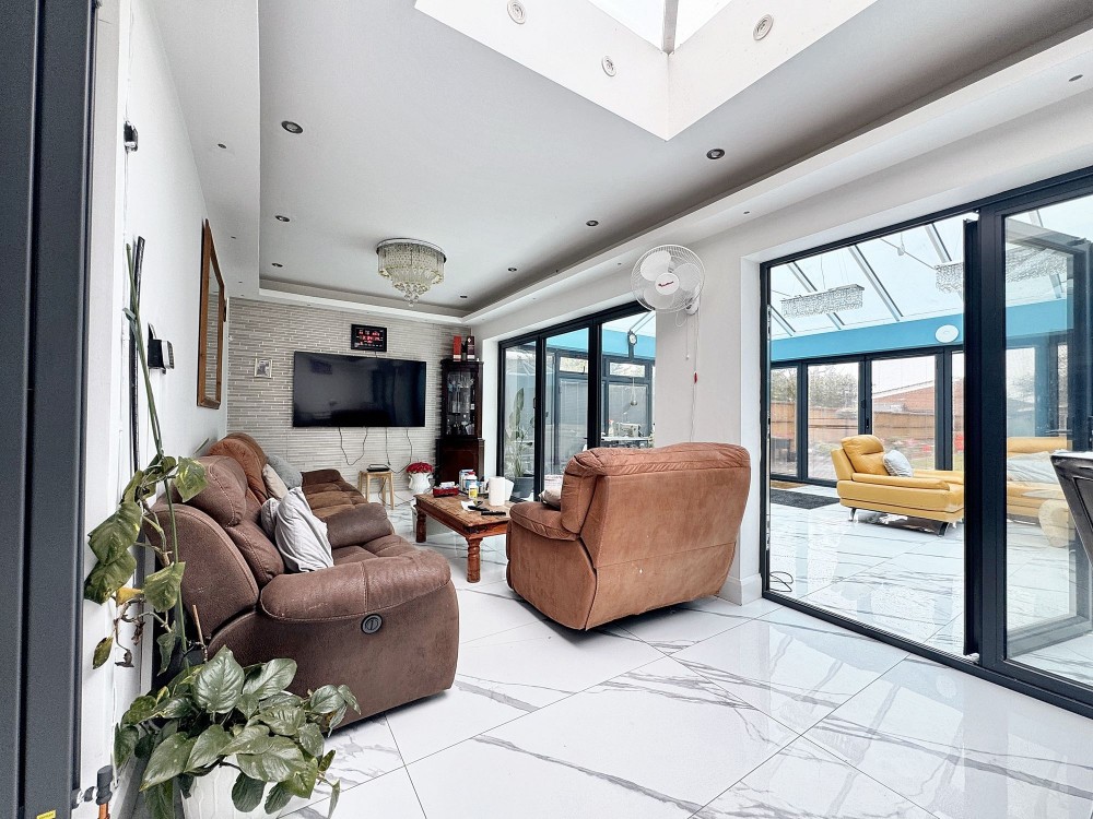 Rear aspect double glazed bi folding doors, size aspect double glazed windows, radiator, tiled flooring.