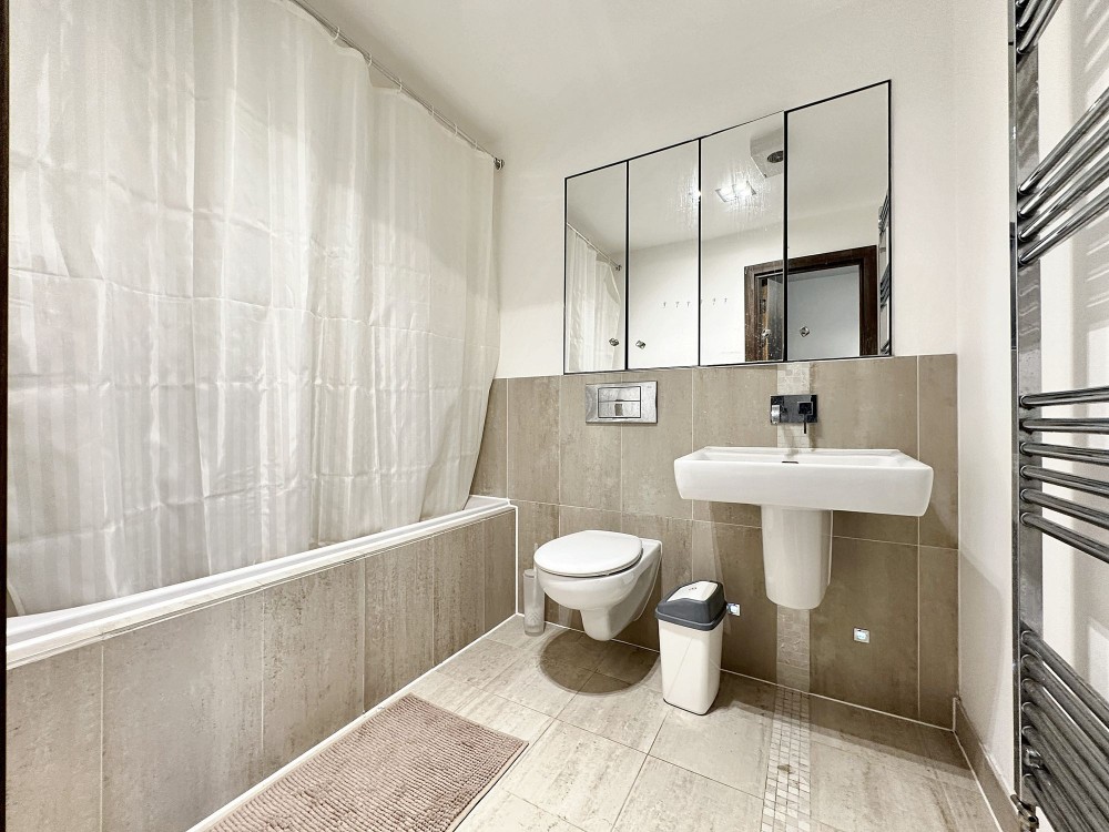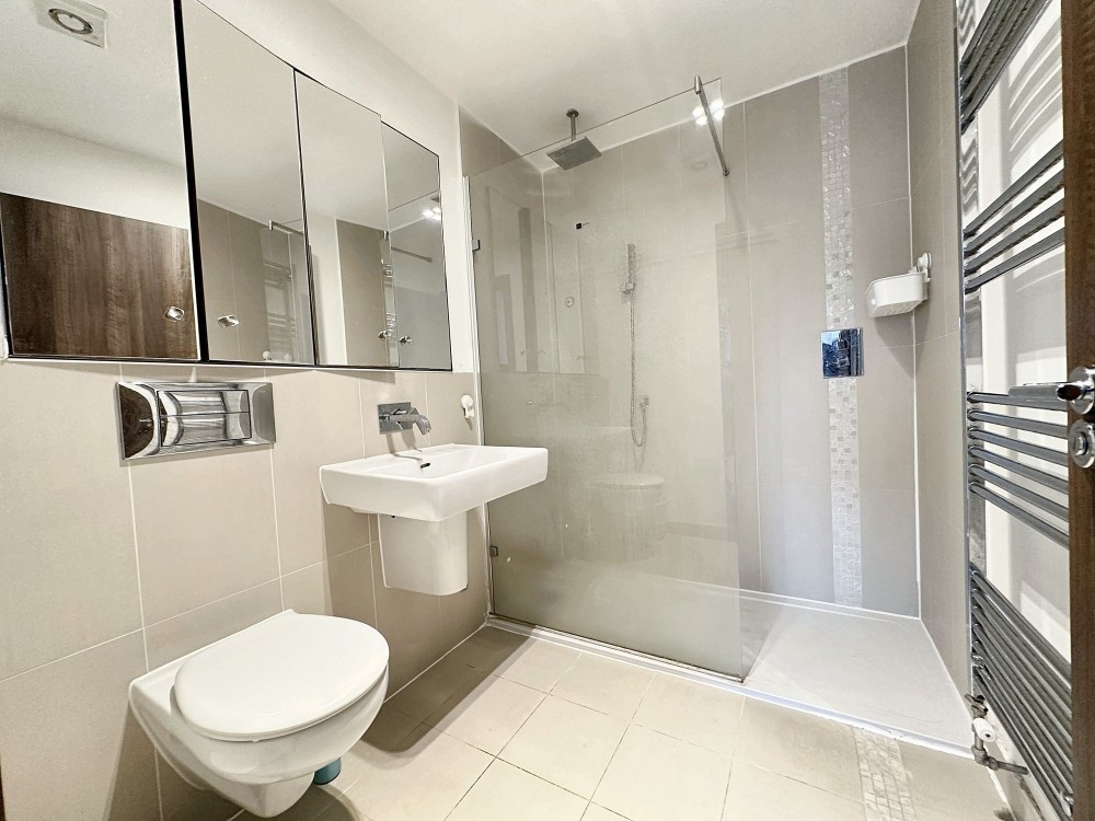 Both bedrooms are designed with comfort in mind, featuring built-in wardrobes and large windows that provide generous natural light and a cosy, inviting atmosphere. The two bathrooms are finished to a high standard, offering a luxurious walk-in shower, full-size bath-tub, wall-mounted toilets, and heated towel rails for added comfort. Residents benefit from both off-road and underground parking, landscaped communal gardens with outdoor seating areas, and a contemporary brick exterior that enhances the building's kerb appeal. With its blend of modern interiors, abundant storage, and unrivalled riverside location, this apartment is perfect for those seeking a peaceful retreat close to nature without compromising on style or convenience.