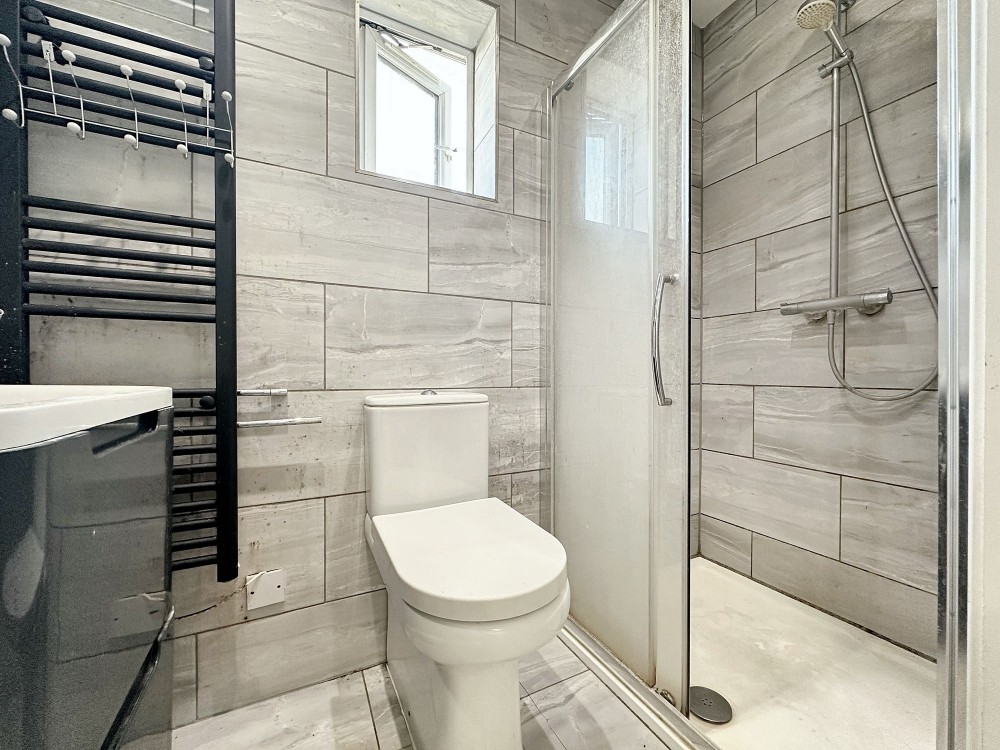 This stylish two-bedroom, one-bathroom apartment is designed with contemporary living in mind, offering a bright and inviting open plan reception area that seamlessly integrates the kitchen and living space. The modern kitchen is fitted with sleek cabinetry, integrated appliances, and a stainless steel extractor fan, making it both functional and visually appealing. Wooden flooring runs throughout the main living areas, adding warmth and elegance, while strategically placed skylights and large windows flood the apartment with natural light, creating a welcoming and airy atmosphere. Both bedrooms are generously proportioned, with neutral decor and practical layouts that provide versatile spaces for rest, study, or relaxation.