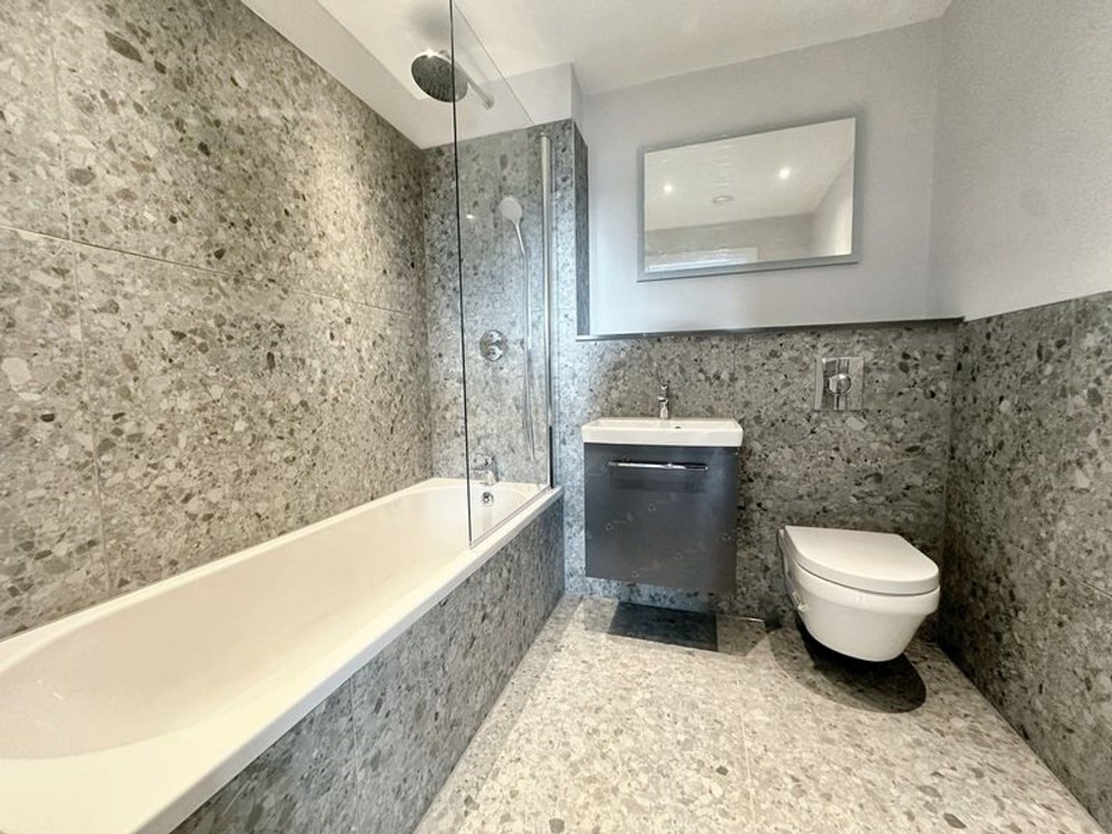 The bathroom is a sanctuary of luxury, fully tiled and fitted with a bath tub and shower, providing a refreshing space to relax and rejuvenate.