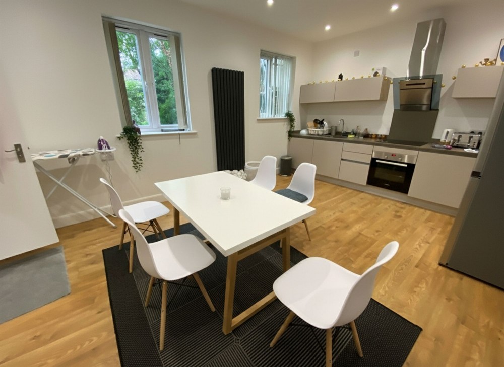 Additional benefits of this flat include efficient heating via a modern radiator in the bedroom, creating a warm and inviting environment throughout the year. The kitchen’s integrated oven and generous natural light ensure a practical yet welcoming space for dining or casual gatherings. Stylish finishes, such as contemporary grey bathroom tiling and premium flooring, add to the property’s appeal. This flat is perfectly suited for professionals or those seeking an easy-to-maintain home with quality features and a comfortable, modern atmosphere. Early viewing is highly recommended.