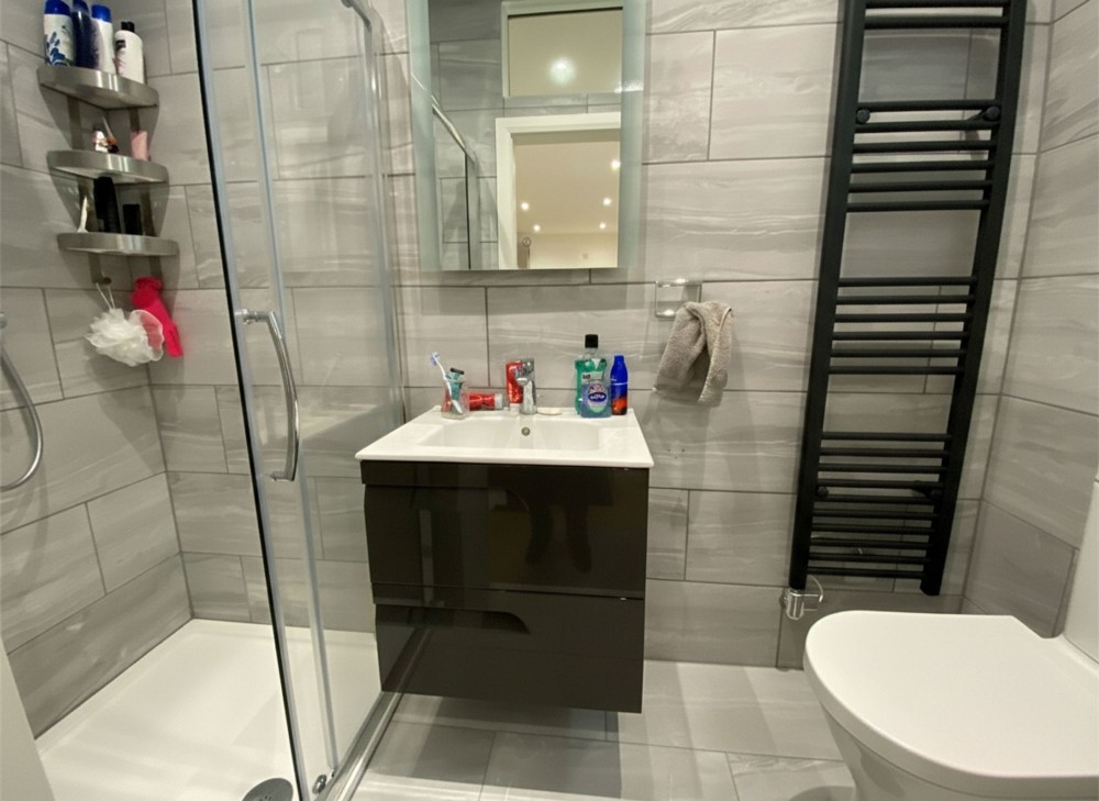 This stylish two-bedroom flat offers modern living across a bright and thoughtfully designed layout. The spacious reception room is enhanced by a contemporary skylight that fills the space with natural light, while plush carpeting ensures a cosy and comfortable atmosphere. The property features a sleek, fully-fitted kitchen with integrated appliances, elegant wooden flooring, and ample storage, making it ideal for both every-day cooking and entertaining. A well-proportioned master and second bedroom, both with plush carpet and neutral décor, provide relaxing retreats for rest and privacy. The modern bathroom is appointed with a walk-in glass shower, a sleek vanity unit, and a heated towel rail for a touch of luxury.