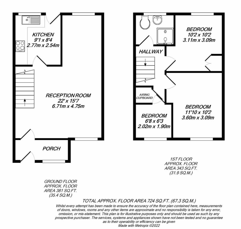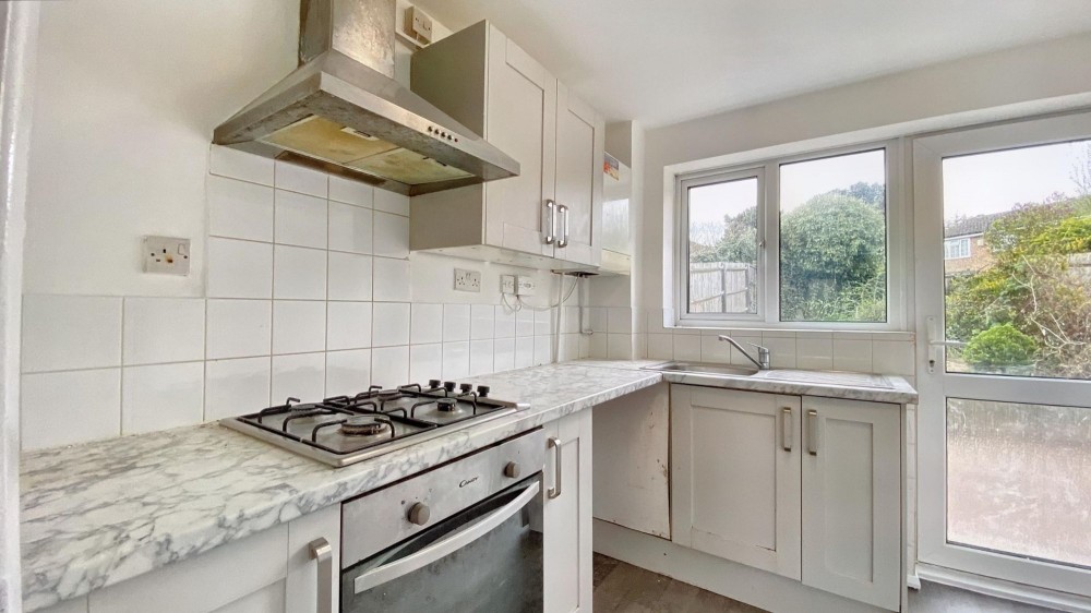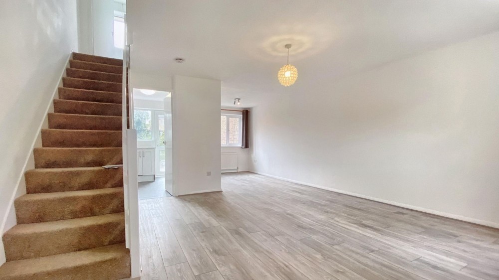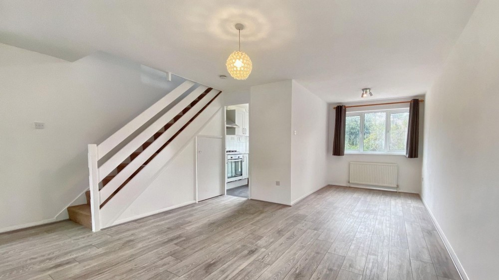 Upstairs, you will find two double bedrooms, one with a built-in wardrobe, and a smaller bedroom, all designed for comfort and practicality. The modern bathroom offers a sleek shower enclosure and elegant tiling, complemented by a frosted window for privacy. Ample built-in storage, radiator heating throughout, and a garage with off-road parking add further convenience and value. This well-maintained home is ready to welcome its next owners.